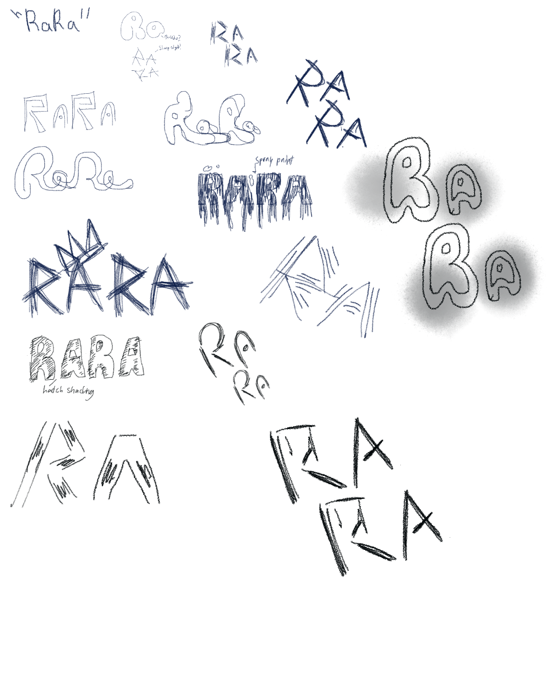 So I experimented with a variety of different bubble-letter, grunge styled type to represent graffiti. The challenge, however, was to make it feel unique to the client.
